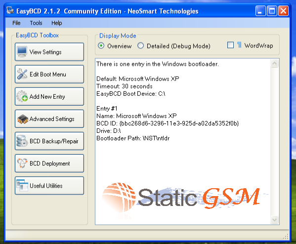 select "Install the Windows XP bootloader to MBR" n click on "Write MBR" & click YES